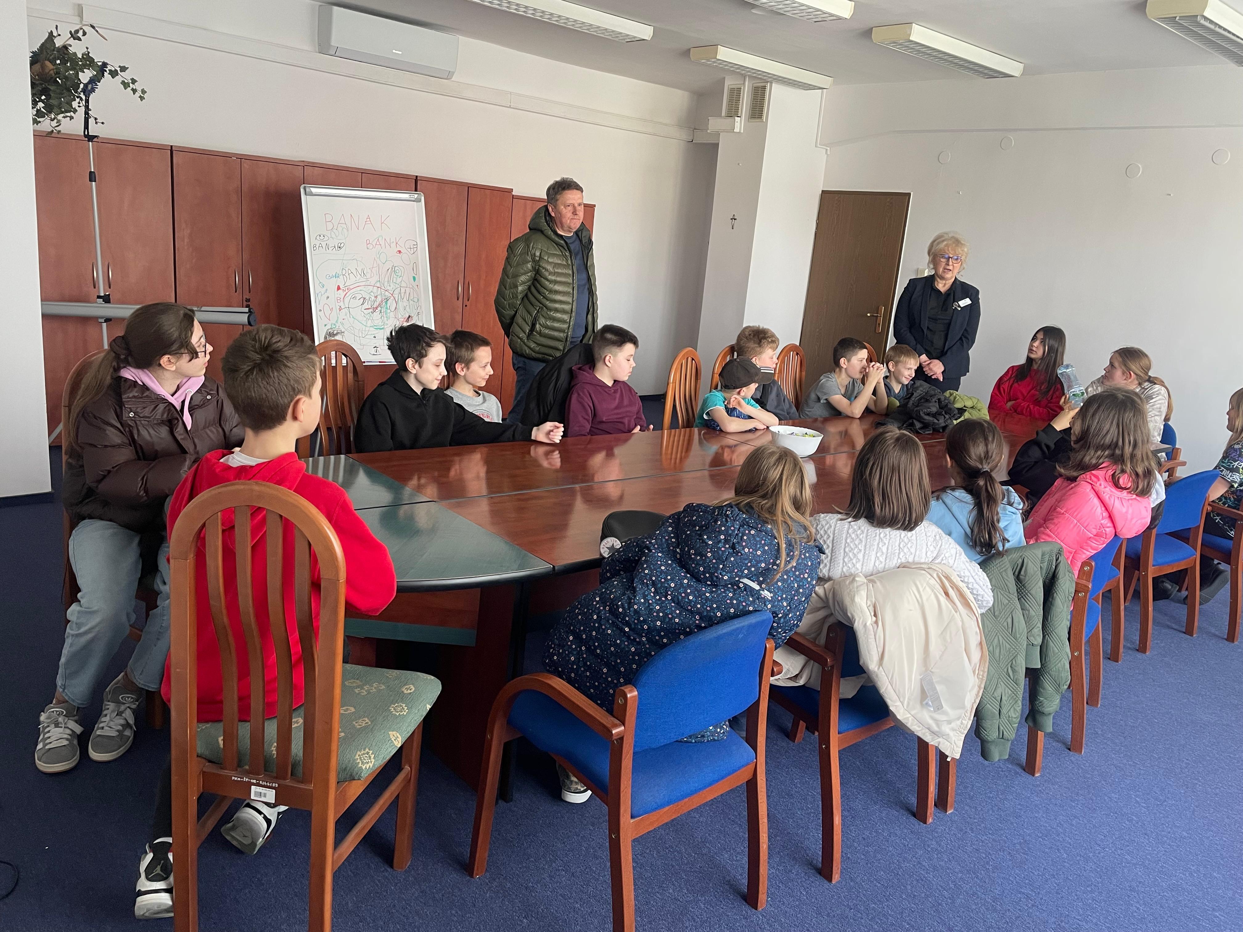 W dniu 30.03.2026 r. uczniowie klasy 5b uczestniczyli w wycieczce zawodoznawczej do banku PKO BP S.A. w Sandomierzu. Celem wizyty było zapoznanie się z funkcjonowaniem tej instytucji oraz poznanie podstawowych zasad korzystania z usług bankowych. Podczas spotkania pracownik banku opowiedział uczniom o tym, czym zajmuje się bank, jakie usługi oferuje oraz jak ważną rolę odgrywa w codziennym życiu. Uczniowie dowiedzieli się, czym jest konto bankowe, karta płatnicza oraz na czym polega oszczędzanie i bezpieczne przechowywanie pieniędzy. W trakcie wizyty uczniowie mieli możliwość zobaczenia, jak wygląda obsługa klienta. Szczególną uwagę zwrócono na zasady bezpieczeństwa, takie jak ochrona danych osobowych, bezpieczne korzystanie z kart oraz unikanie oszustw.