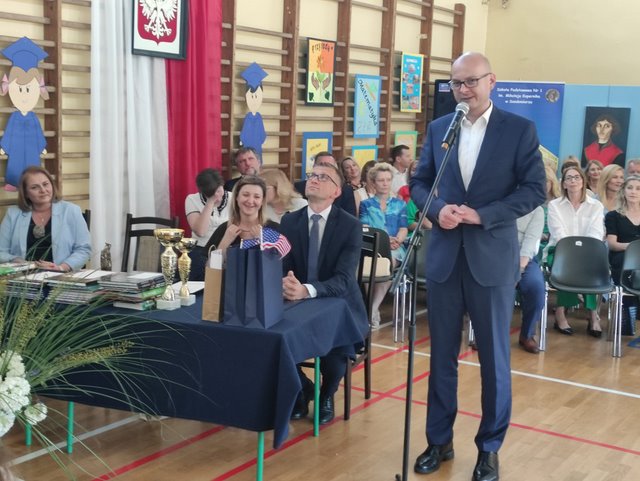W uroczystości wzięli udział Pan Burmistrz Paweł Niedźwiedź oraz przedstawiciel Rady Rodziców Pani Justyna Fularska.