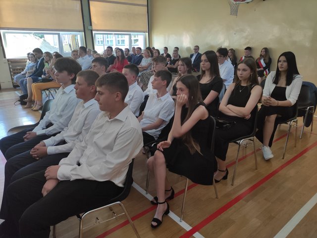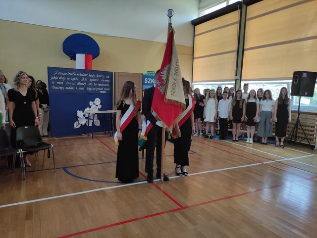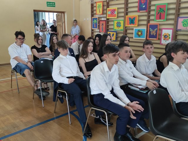 Absolwenci klas ósmych rozpoczęli uroczystość tańcem poloneza, a część artystyczną przedstawili ich młodsi koledzy. Nie obyło się też bez szkolnego chóru, który przygotował wspaniały repertuar muzyczny.